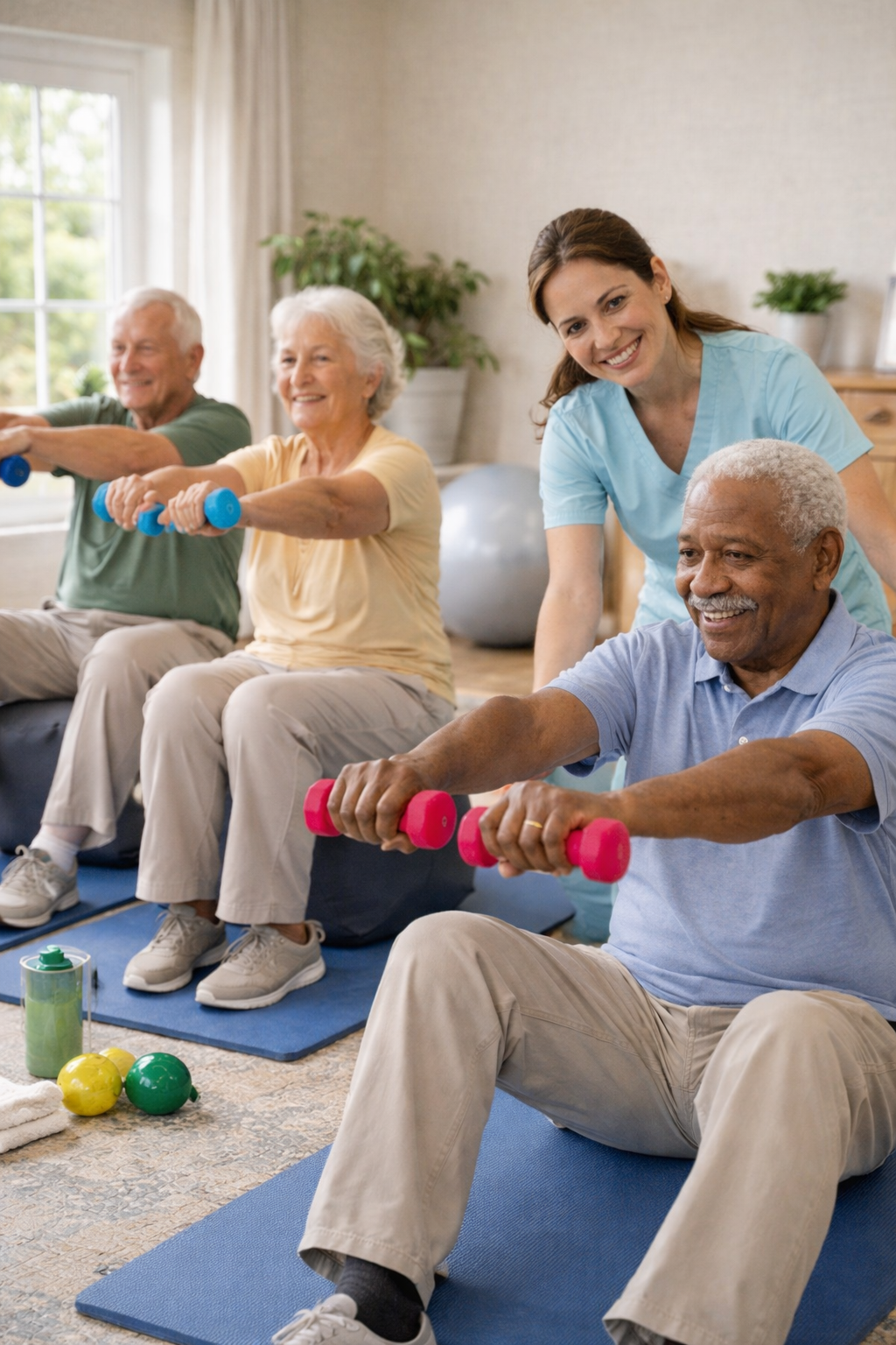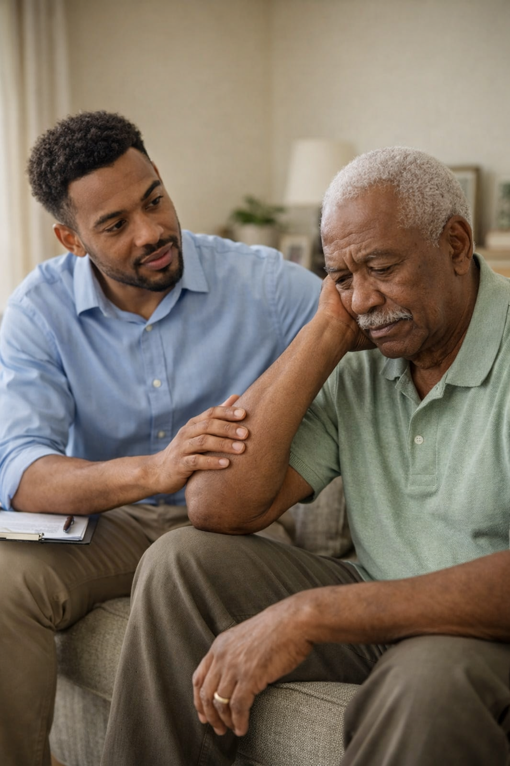 Apoio emocional e estímulo ao bem-estar mental dos idosos.
